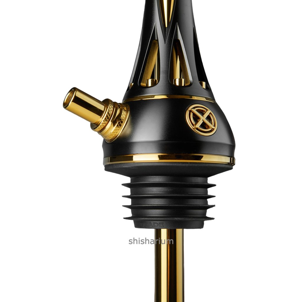 During the development of the hookah, the Blade brand paid attention to the smallest elements. With high-precision machining down to 0.002 mm, all parts are precisely assembled. Advanced processing technology and polishing of every detail. All internal elements that come into contact with water are made of food grade stainless steel. All stainless steel elements are coated with titanium. Every detail is hand polished. In addition to the special differences, it is worth noting that the hookah is quite tall (the height with the base is about 60 cm) and the dip shaft is also gold in color. The mouthpiece is styled like a shaft and fits quite comfortably in the hand. By the way, there is another mesh on the plate that contributes to the not so fast extinguishing of the coal.
