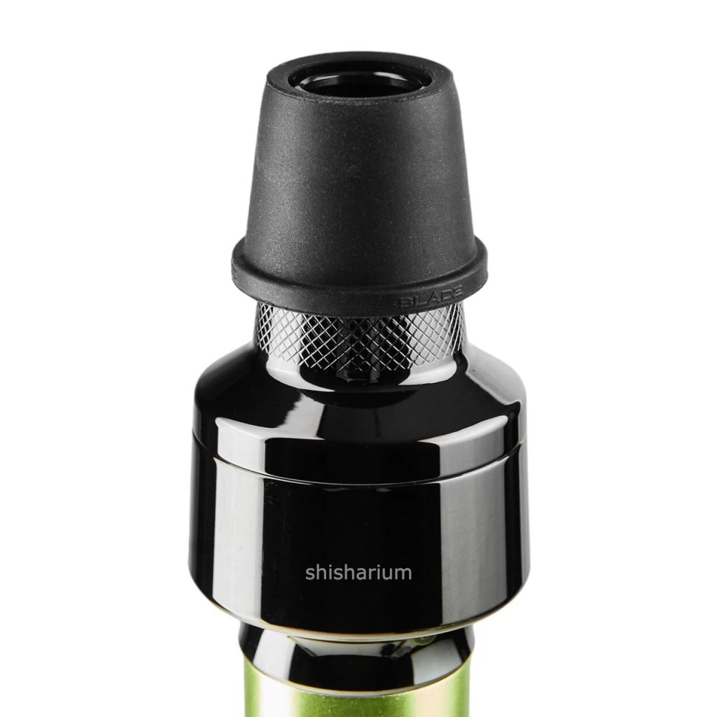 During the development of the hookah, the Blade brand paid attention to the smallest elements. With high-precision machining down to 0.002 mm, all parts are precisely assembled. Advanced processing technology and polishing of every detail. All internal elements that come into contact with water are made of food grade stainless steel. All stainless steel elements are coated with titanium. Every detail is hand polished. In addition to the special differences, it is worth noting that the hookah is quite tall (the height with the base is about 60 cm) and the dip shaft is also gold in color. The mouthpiece is styled like a shaft and fits quite comfortably in the hand. By the way, there is another mesh on the plate that contributes to the not so fast extinguishing of the coal.